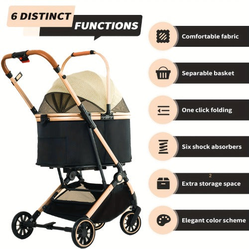3-in-1 Foldable Pet Stroller with 4 Wheels – Detachable Carrier & Car Seat for Small/Medium Dogs & Cats up to 50 lbs