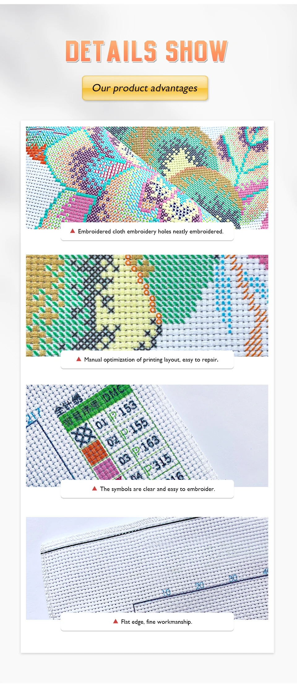 - Clear Printed Canvas: Choose between 11CT or 14CT fabric options, making stitching easier and more enjoyable.